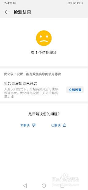 如果当前手机设置了某个功能会耗电很大,此时页面会出现待处理项提示。