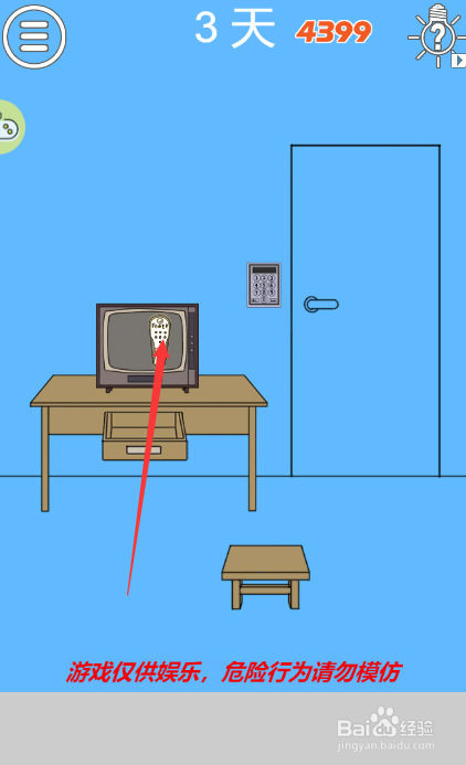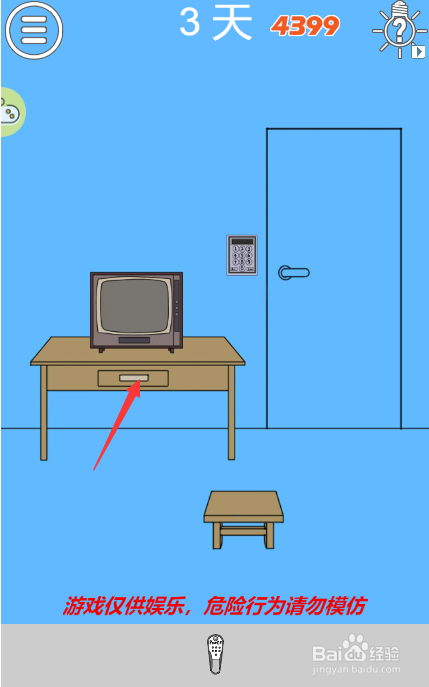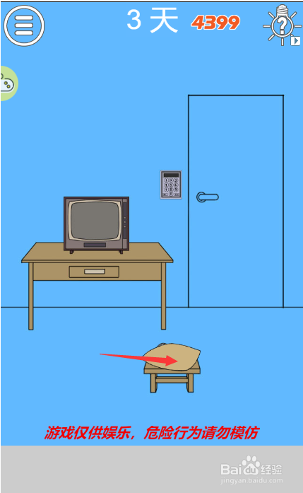这一关需要密码才能过关,首先要点击椅子上的抱枕获得遥控器