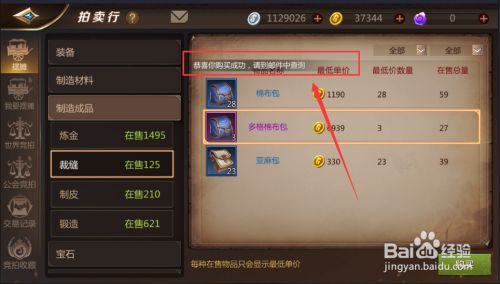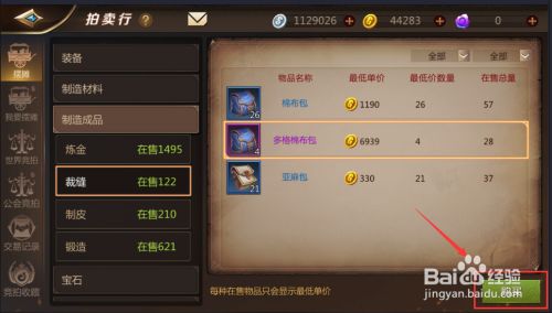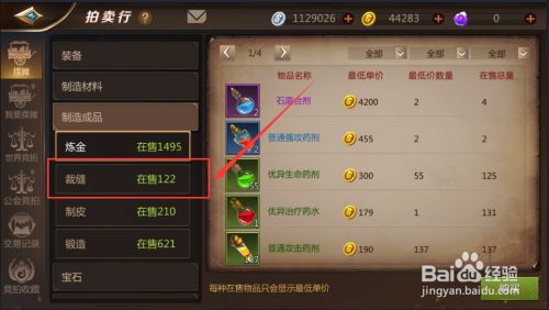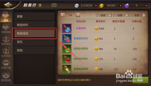 然后在【摆摊】左侧的列表中找到【制造成品】并点击,如图: