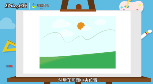 然后画上太阳、云朵、草地。