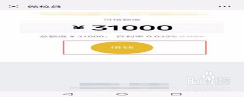 点击了“微粒贷借钱”之后,就进入了借钱的界面,中间有一个很大的“借钱”的按钮,点击它。