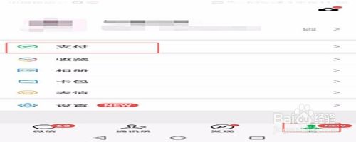 进入了个人中心的界面之后,里面有很多的功能,有收藏,相册,卡包,支付等菜单,我们这里选择“支付”这个选项。