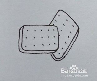 用中性笔画饼干的厚度。第一块饼干画好了!