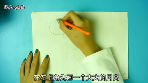 1在左上角先画一个大大的月亮,画嫦娥仰着的脸,下巴往上抬。
