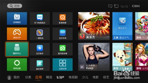 在桌面找到“应用”-“媒体中心”打开