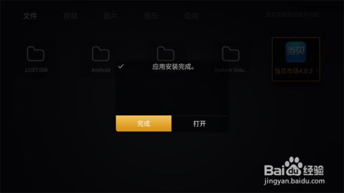 然后将U盘连接盒子的USB接口,当弹出对话框时,选择“文件管理”,即可找到安装包并安装即可。