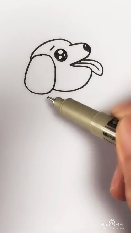 再画出小狗的眼睛,眉毛和鼻子,如下图所示。