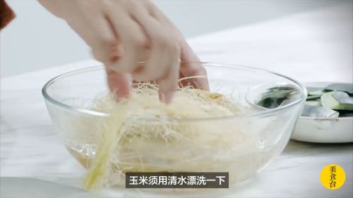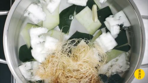 13锅中倒入适量清水,放入冬瓜皮,冬瓜瓤,玉米须和姜片。