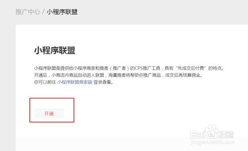 扫码进入管理后台,选择推广中心进入小程序联盟。