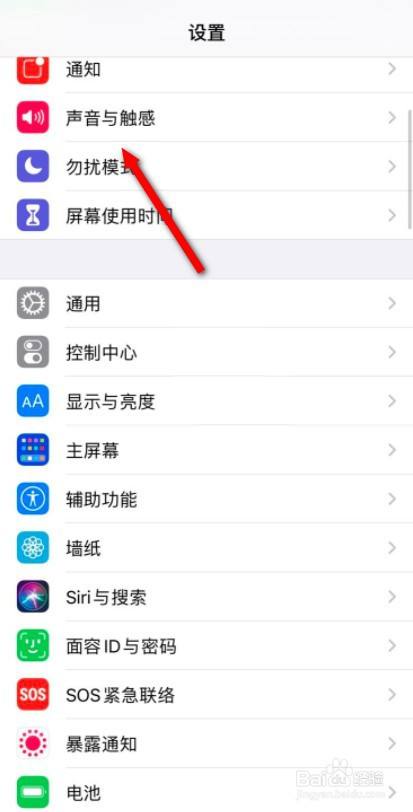 打开手机桌面上的设置,在设置中点击声音与触感。