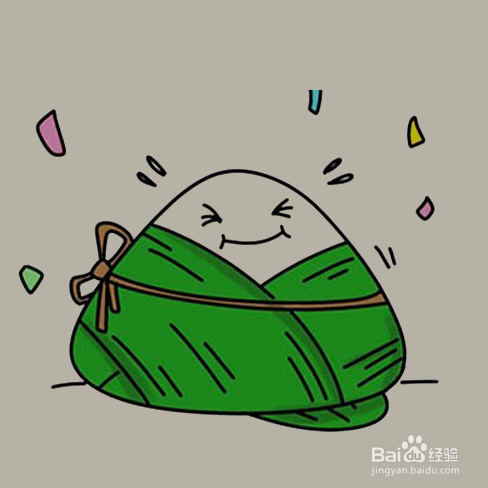 在粽子的上方画出一个笑脸。
