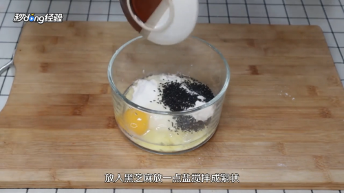 放入黑芝麻,放一点盐,搅拌成絮状。
