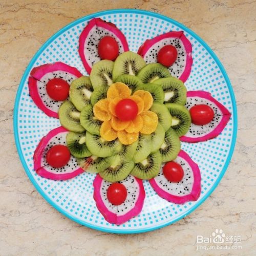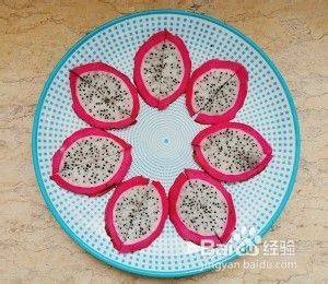 将火龙果对半,切薄片。如果火龙果太大了,可以在中间切掉一部分,确保拼出的花型是椭圆的