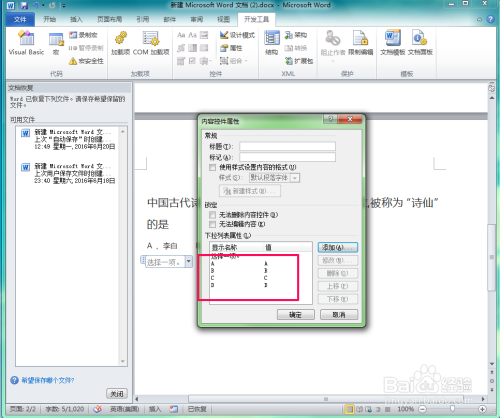 打开一个word文档 并编辑好你的问题及答案选项 如图