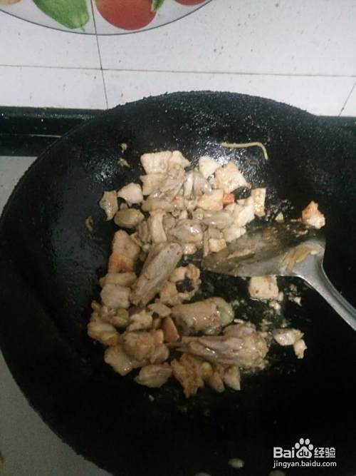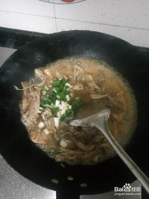 然后加入葱姜蒜等食材,进行翻炒,等到鸡肉全熟的时候,就可以在加入鸡精就可以出锅了。