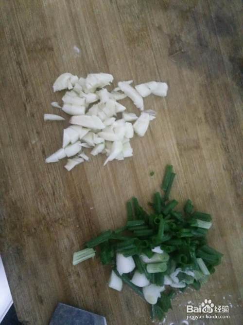 准备葱姜蒜若干,切成碎末,放在一边备用。同时辣椒切成丝。