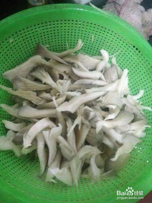 蘑菇撕成条状,然后清水洗净,去除表面的泥土杂质。