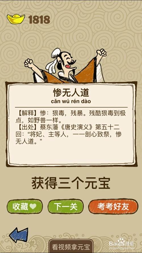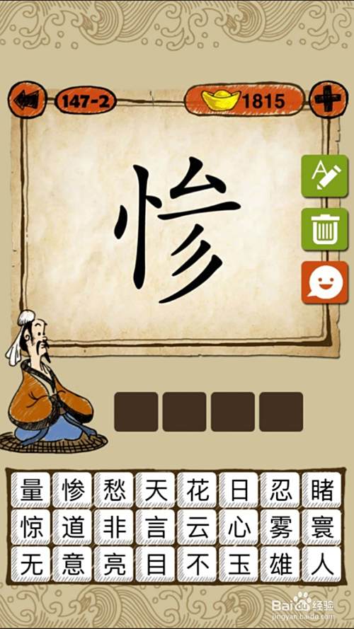 成语玩命猜第147-2关,如下图,“惨”字没有了“人”,答案惨无人道。