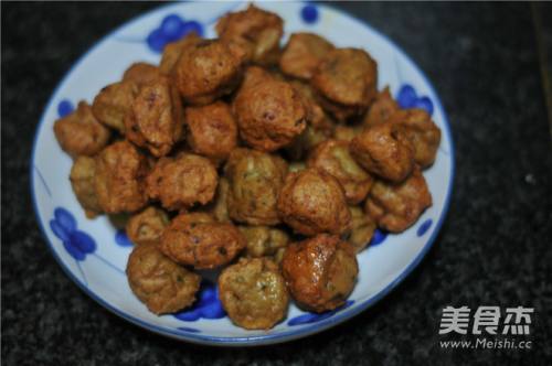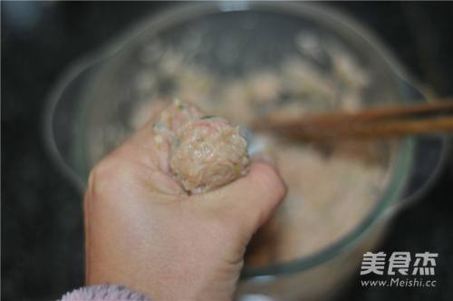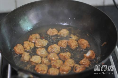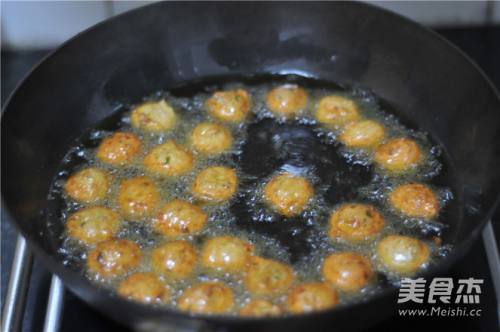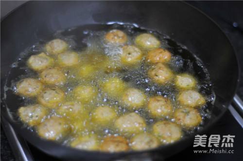 8锅中倒油,温热下丸子,保持中火,将丸子一个个放入烧热的油锅