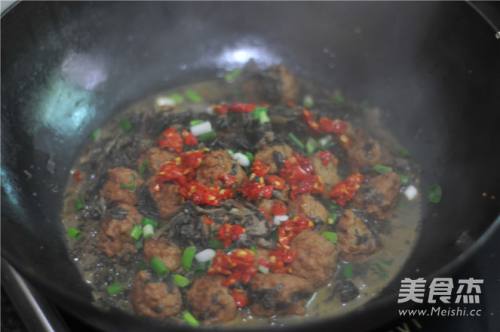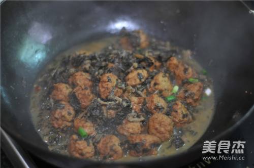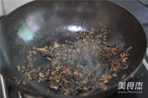 11锅里留适量油,炒香葱姜,倒入白菜干