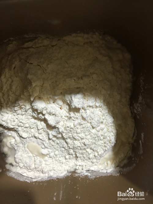 把中种面团材料全部混合,放入面包机桶,和成团后盖湿布进行发酵,