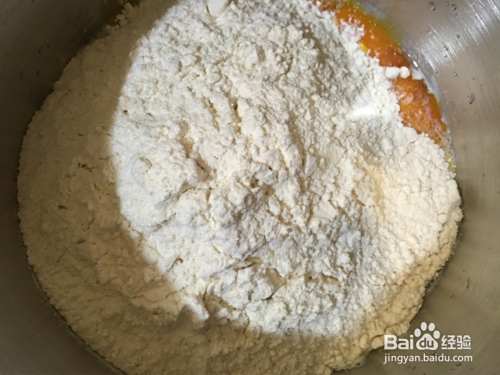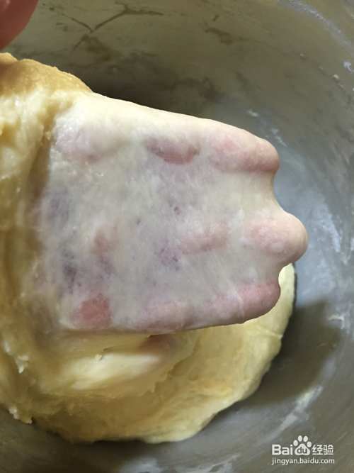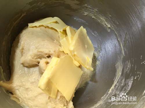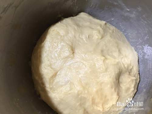 加入主面团除黄油外全部放入厨师机桶,把桶装入厨师机,先用低档和成团后改中档