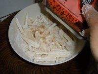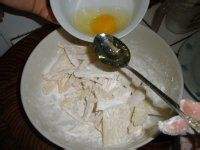 这个也非常简单,就是要先把藕洗好,切成条。沥干水。千万不要有一点水,有水的话,面粉糊不上藕条上,并且下锅会溅油。