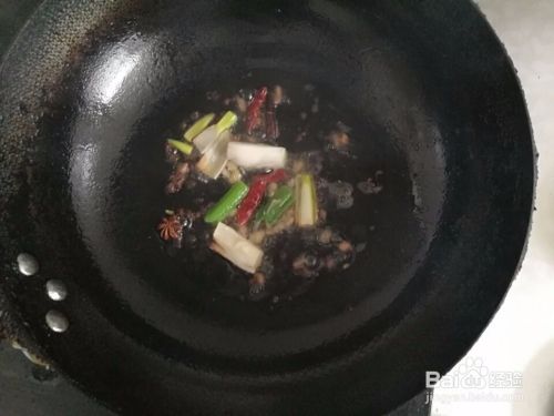 倒油拧开火,油渐有热气后,鲜葱、花椒等一同滑入锅中,翻上几遍在油中爆香。