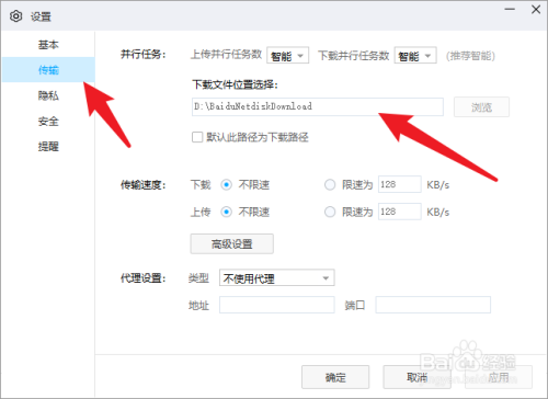 最后,点击【传输】,右边查找和设置【下载保存路径】