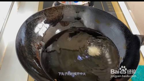 起锅做宽油,油温烧至四五成熟,放入丸子,下丸子的时候开中火,全部放入后开大火,定型之后,轻轻搅动,炸制丸子飘起来时捞出。