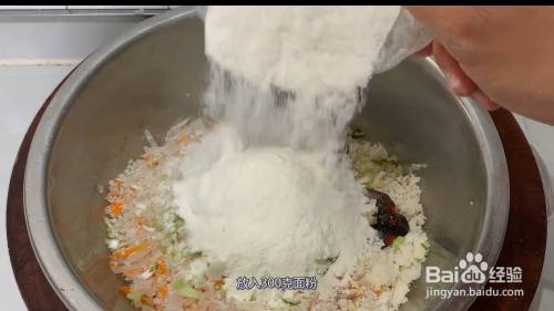 挤干水分,用刀切碎,放入盆中,放入馒头,用擦板擦碎,放入葱花姜末香菜适量的盐,13香,一小勺蚝油,胡椒粉。