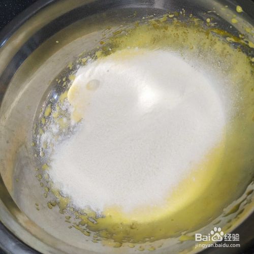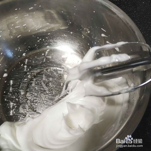 蛋白一个放入无水无油的盆中,剩余的十克白砂糖分三次加入蛋白打发至硬性发泡