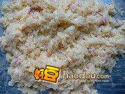 2把蛋液、五花肉丁、盐同糯米拌匀,拌匀后静置片刻(让糯米充分入味变黏)。