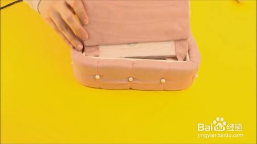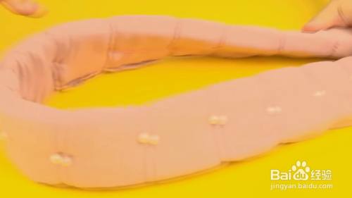 然后做一条长的布里装了海绵的床上的靠枕,并在上面粘上珍珠。