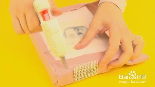 首先拿出一块做床的布料,并在上面抹上胶水。