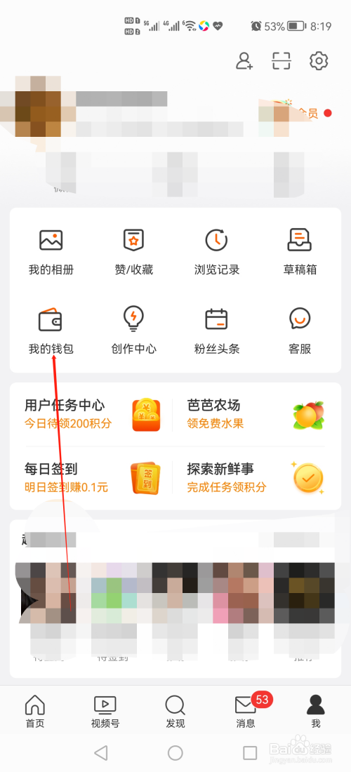 第二步、进入“我”界面,点击我的钱包选项,如下图