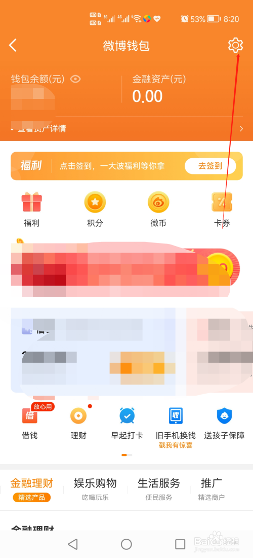 第三步、进入微博钱包界面,然后点击右上方的设置图标,如下图所示