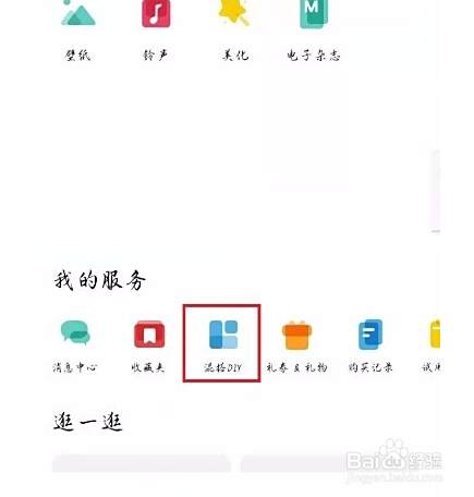 2.接着在主题页面中,我们在页面右下角点击“我的”选项进入到我的页面,之后在页面上点击“混搭DIY”选项。