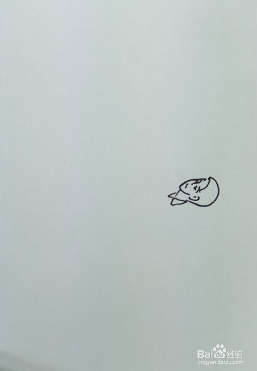 在白纸上用线条和弧线画出一个人的头部轮廓,并画出他的五官和头发,他正仰着头向上看呢。
