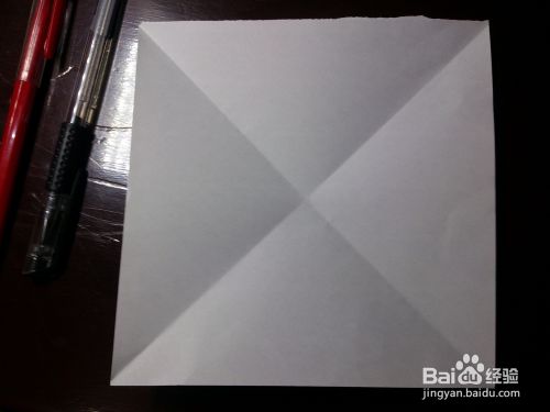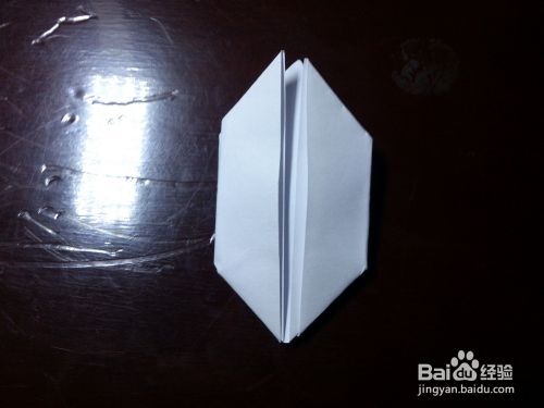 将折好的角撑开,压平,折成兔子耳朵的形状。