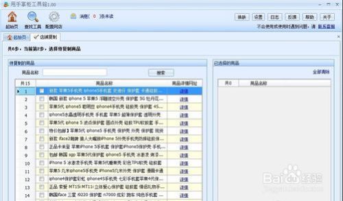 现在我们就选择所需要复制的商品。同理,点击某项商品前面的小正方形,显示打勾即为选择商品成功。为了一项一项点击,你可以批量选择商品,在确定好了所需要的商品之后。点击下一步