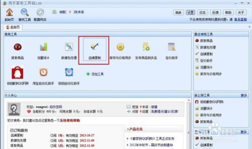 打开甩手工具箱点击查找工具之后出现一个界面,找到店铺复制工具后,点击,如下图所示