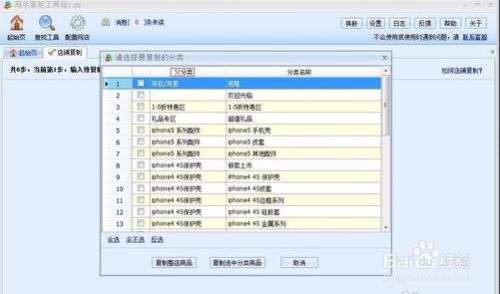 然后选择店铺的分类复制,点击商品名称前的小正方形,打勾即为选中。另外你想全部选中的话,可以点击批量选中,就是在父分类下一行的哪个小正方形,最后点击下一步