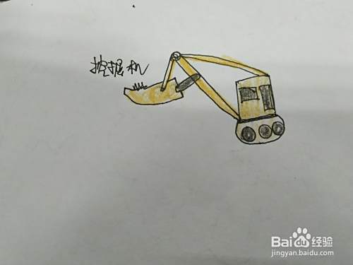 最后我们为挖掘机涂上颜色,一般都是黄色的,当然你也可以发挥想象力,涂一台自己喜欢的挖掘机。
