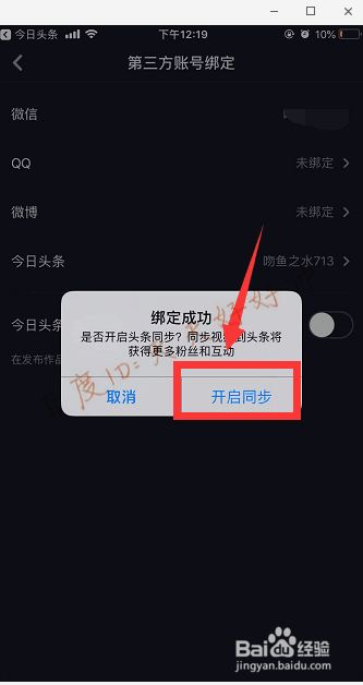 这样就可以“开启同步”,在抖音发布视频时就能自动同步到今日头条了。