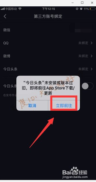 如果没有安装今日头条,会要求安装,点击“立即前往”,根据提示安装好并登录。