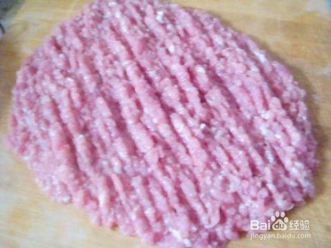 把羊肉剁成泥状,中间慢慢加入花椒水。