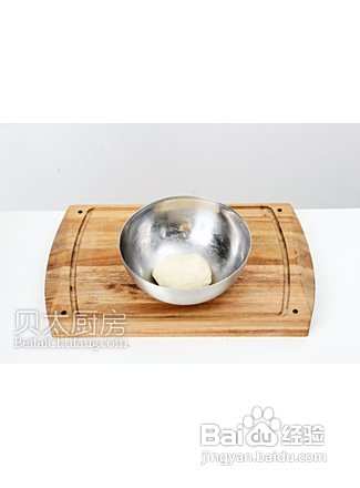 将面团擀成长约20cm、宽约18cm、厚度约0.5cm的长方形面片,用保鲜膜包好放入冰箱冷藏室冷藏30分钟待凝固。