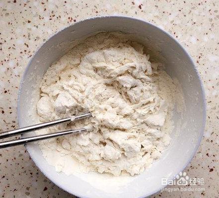 面粉里加入老面,清水分次倒入面粉里搅拌成棉絮状