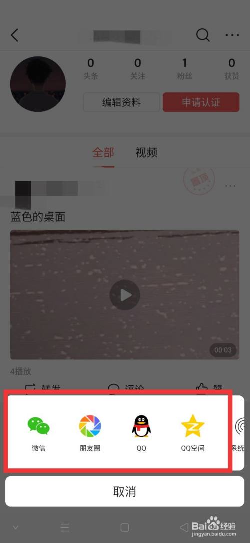 点击后,点击选择将自己的头条号分享到微信、朋友圈或者QQ等。